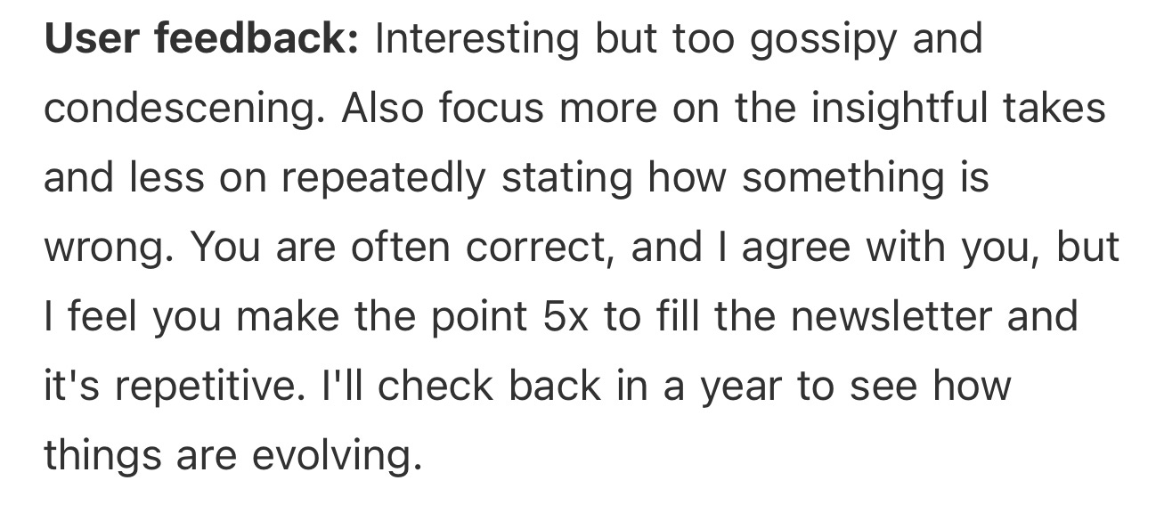 Sometimes very good people, many of them my friends, unsubscribe from AI Health Uncut for various reasons. In this case, which I wish would happen more often when people leave, a paid subscriber left constructive criticism. I really appreciate that.
